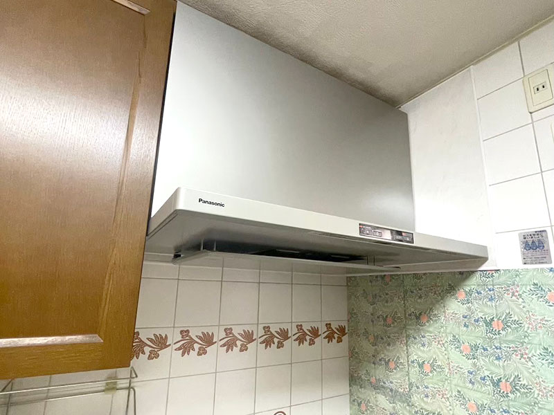 元々の換気扇がプロペラファンで掃除がしづらかったため、掃除がしやすいPanasonicの「フラットレンジフード」をご提案させていただきました。