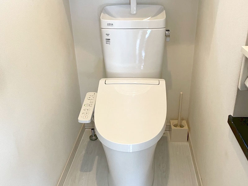 トイレ:LIXIL アメージュ便器(便座:LIXIL シャワートイレKB) フロアタイル:シンコール マットネラ ナラR(品番:RW-2250) |
