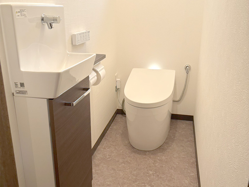トイレもタンクレスの為、すっきりとした印象となりおしゃれな仕上がりとなりました。